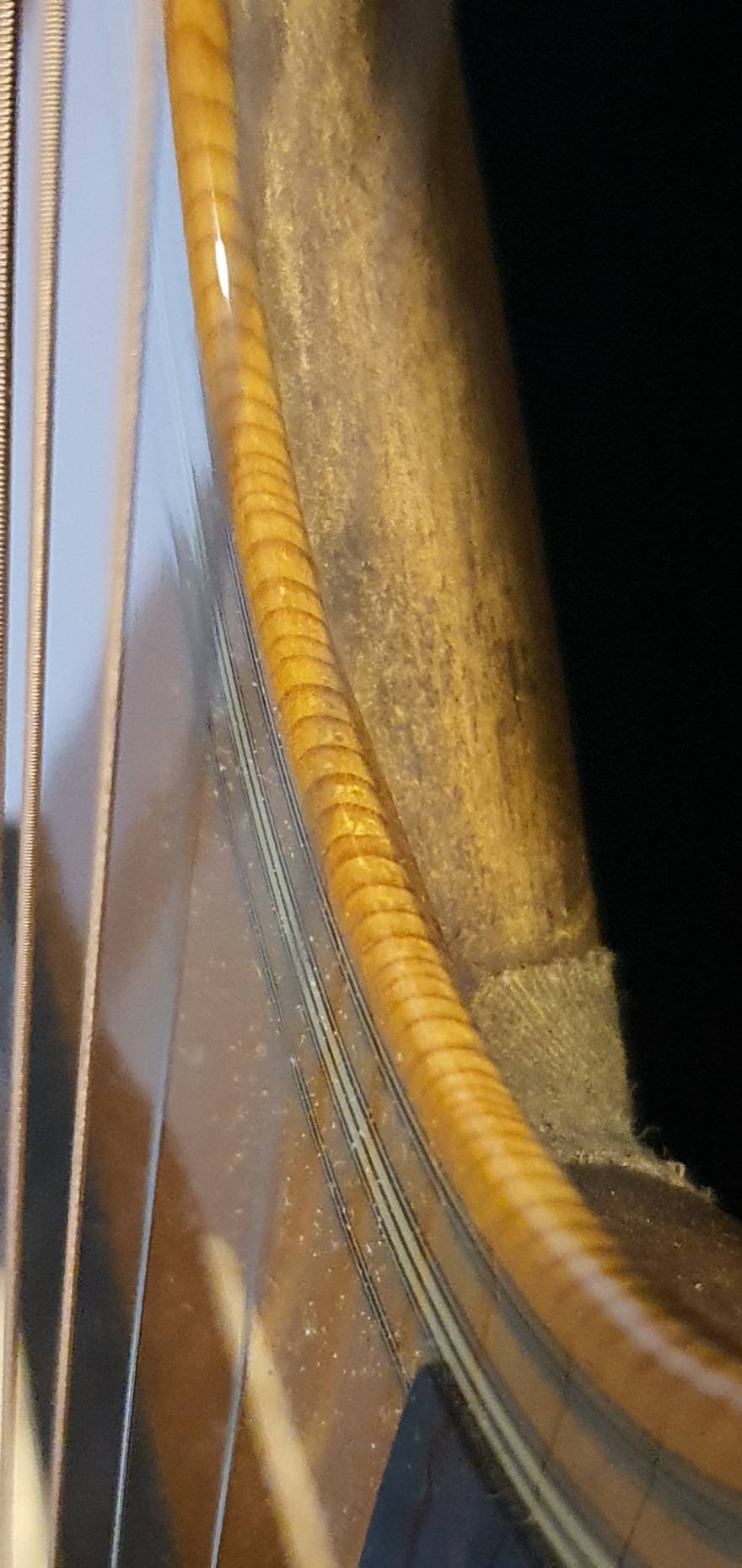 **วิธีที่ 1: สังเกตที่ขอบรูเสียง (Soundhole Edge)
